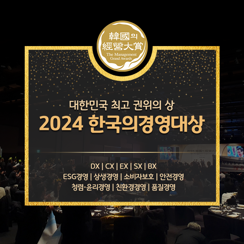 한국의경영대상은 경영환경 변화에 대응하는 혁신역량을 기반으로 기업의 이해관계자인 고객, 직원, 주주, 지역사회가치를 증대시키고 궁극적으로 대내외적으로 존경받는 이미지를 구축한 기업에게 고객과 각 분야의 전문가가 그 뜻을 모아 드리는 대한민국 최고 권위의 賞입니다. 2024년 새롭게 변화하는 한국의경영대상은 시대적 변화를 선도하기 위해 대한민국을 대표하는 많은 기업들과 혁신의 노력을 함께 하여 나갈 것입니다. 기업 및 기관 관계자 분들의 많은 관심과 참여 바랍니다.