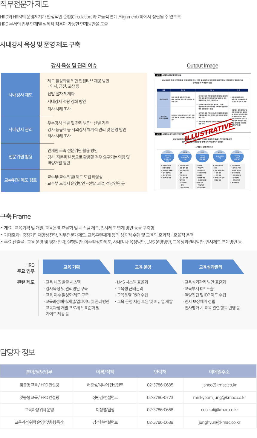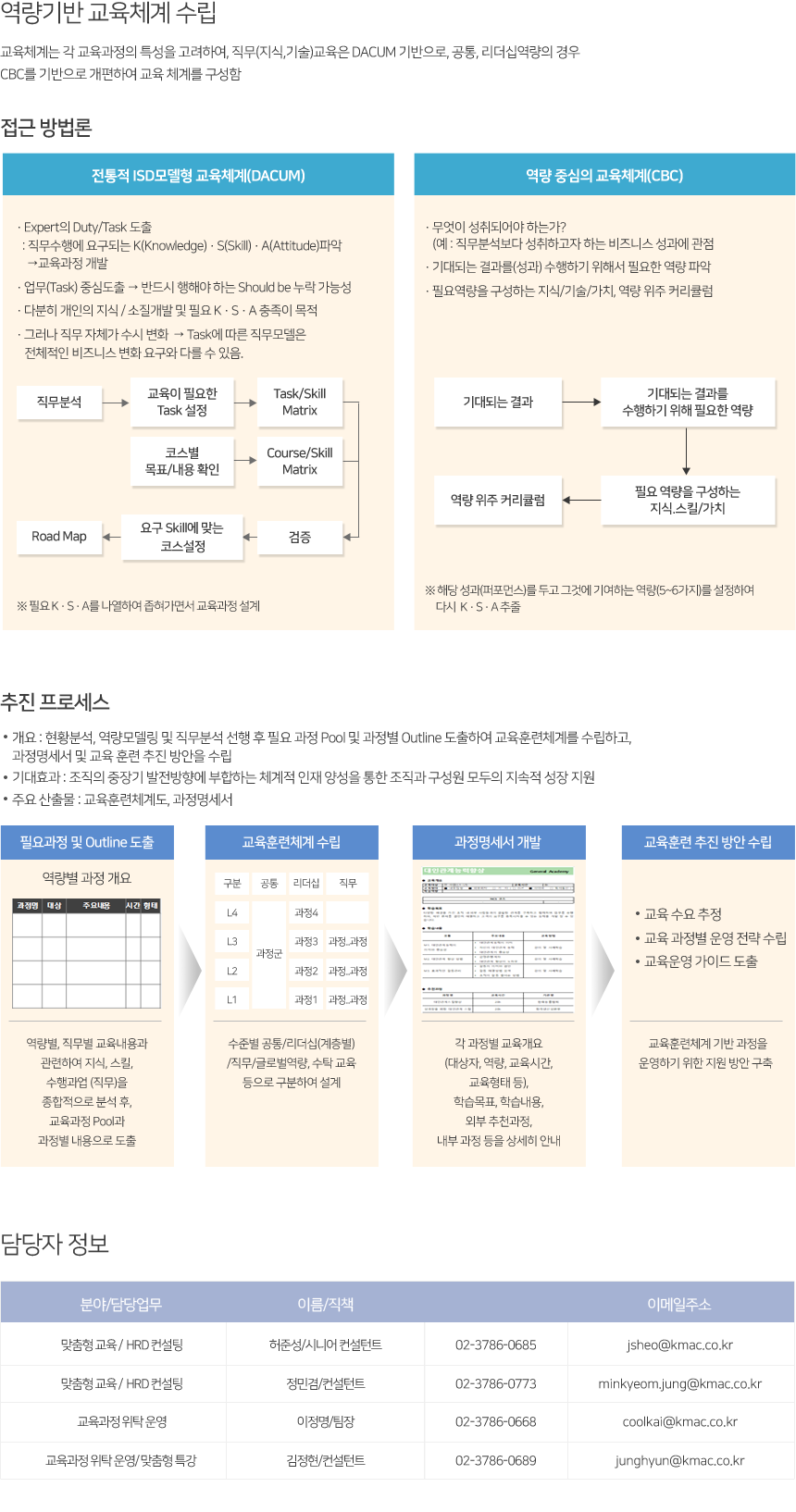 KMAC는 중앙부처, 공공기관 등을 대상으로 기관별 교육 니즈와 현안 과제를 체계적으로 분석하여 공통, 직무, 리더십 역량 등 공공부문에 특화된 전문적인 교육 솔루션을 제공하고 있습니다.