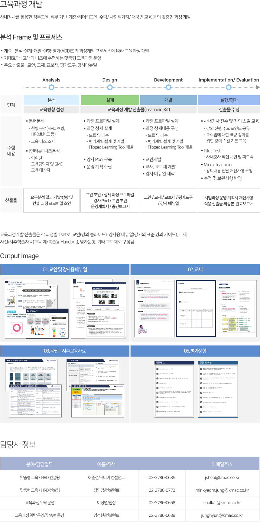 | 맞춤형 교육 및 컨설팅(공공) | 정민겸/시니어 | 02-3786-0773 | minkyeom.jung@kmac.co.kr |
