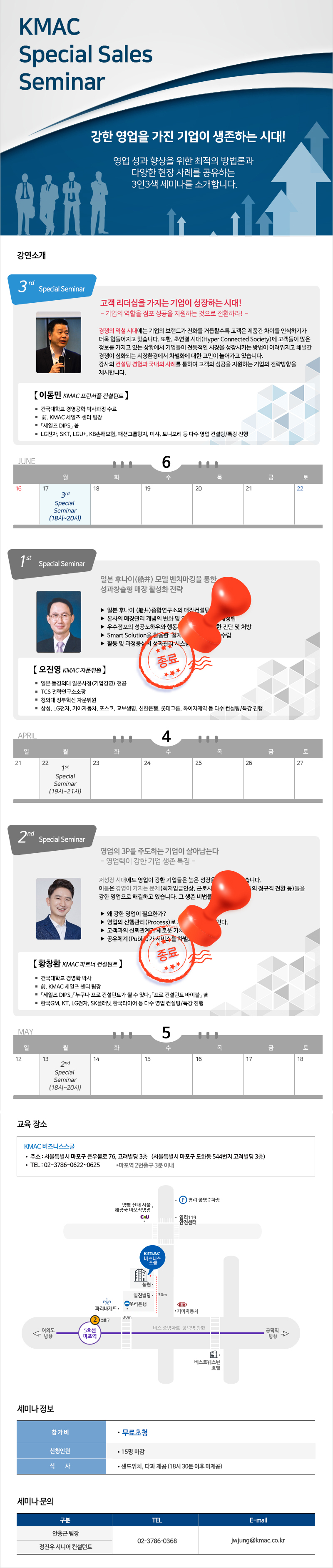 무료 초청 세미나 입니다. 세미나 신청시, jwjung@kmac.co.kr 로 메일 주시기 바랍니다. |