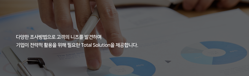 - 다양한 조사방법으로 고객의 니즈를 발견하며, 기업의 전략적 활용을 위해 필요한 Total Solution 제공